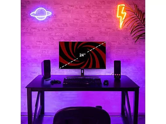 - 📺 Ecrã 24″ Full HD (1920×1080) — tamanho ideal para gaming competitivo, com excelente nitidez e foco total no jogo.