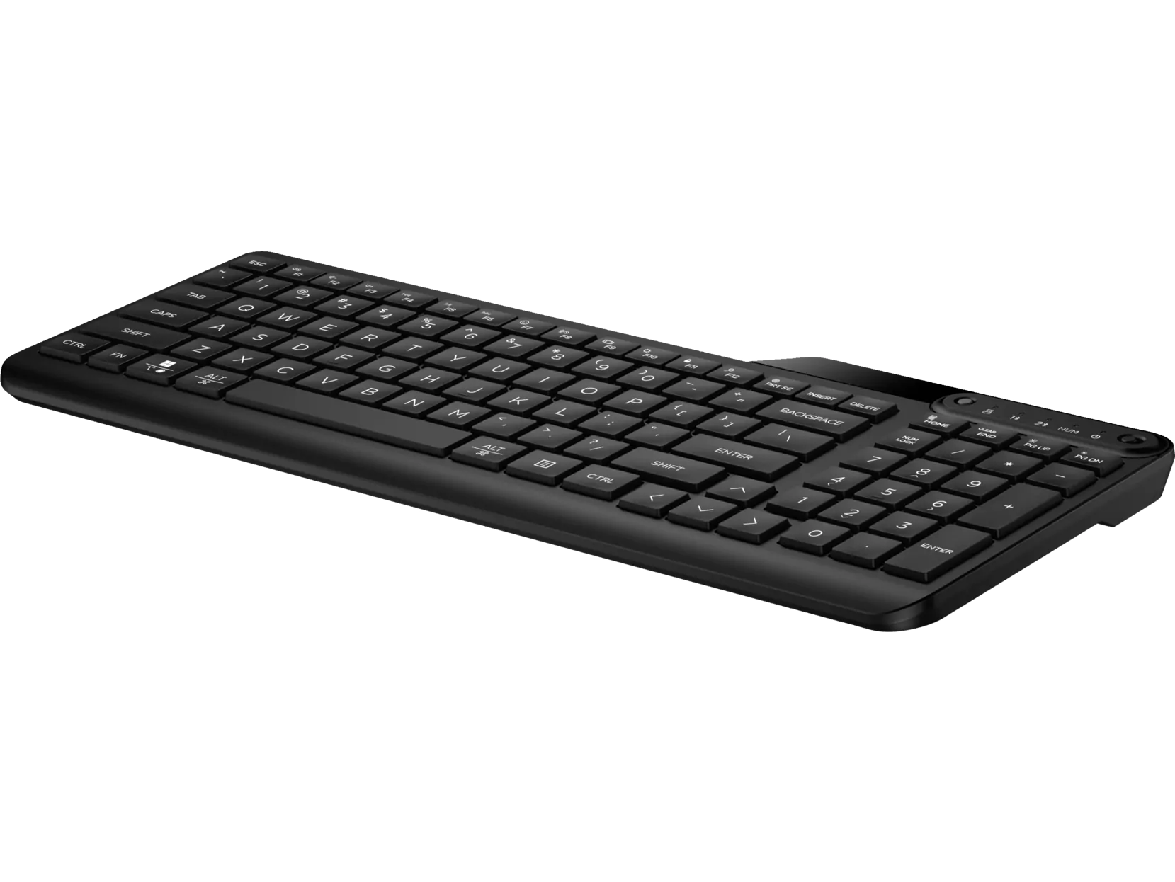 - Layout completo com bloco numérico, teclas de perfil baixo (≈ 2,5 mm de curso) para escrever confortável e silenciosamente.