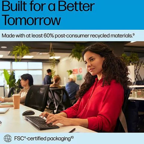 Além disso, a HP frisa que os materiais incluem pelo menos 60% de plástico pós‐consumo e a embalagem é certificada FSC — boa escolha também se te preocupas com sustentabilidade.