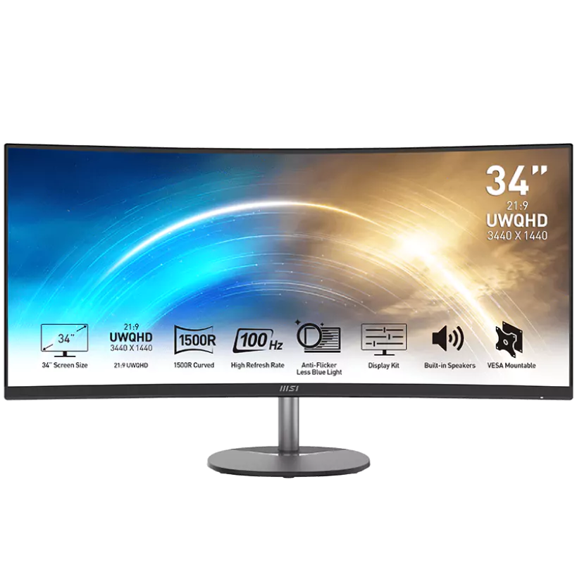Monitor Curvo MSI 34" PRO MP341CQ VA UWQHD 1ms