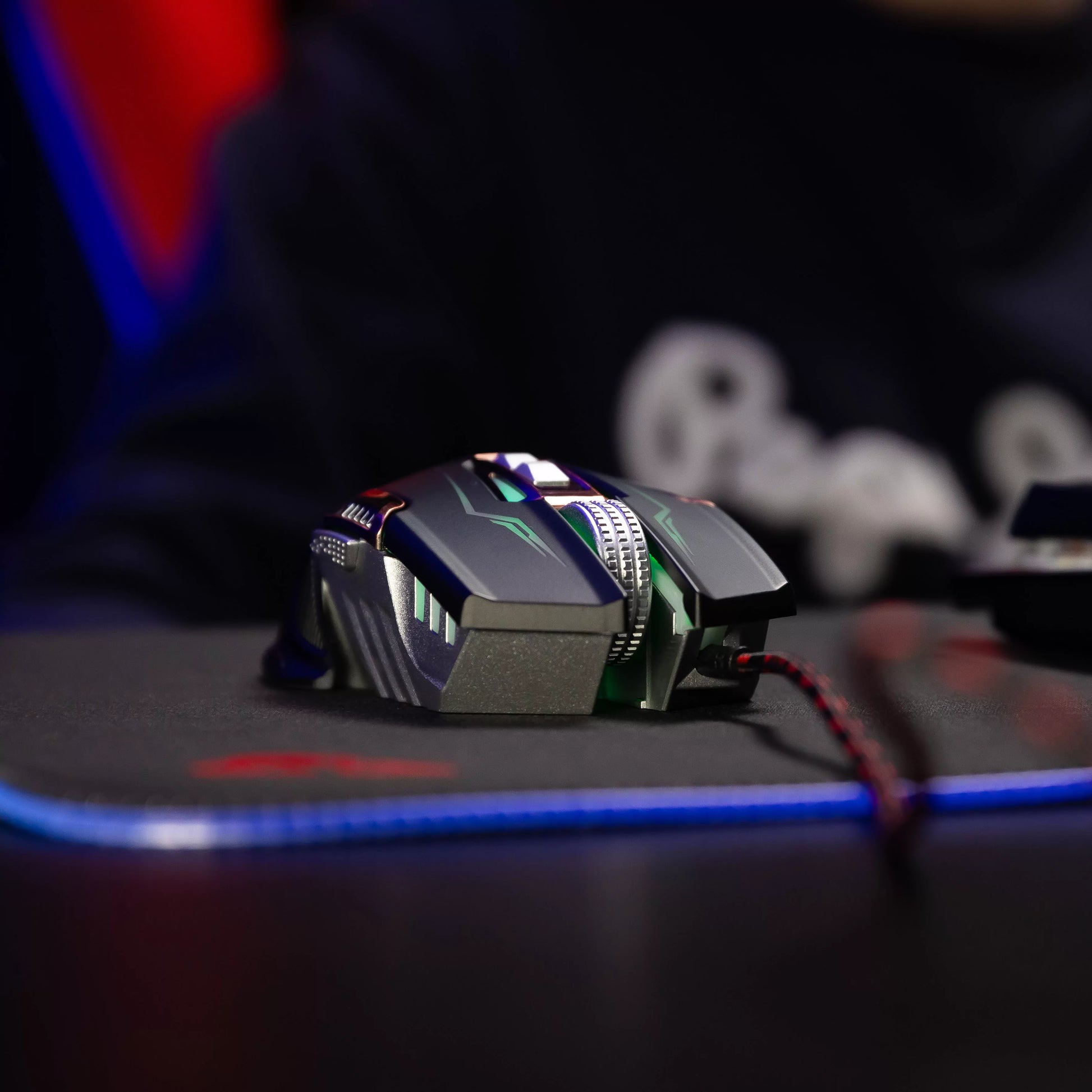 - Iluminação RGB com 7 cores — dá brilho ao teu setup e torna-o mais pessoal.
