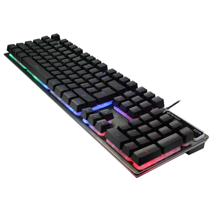Teclado gaming full-size com 104 teclas, iluminação RGB, anti-ghosting até 25 teclas — ótima escolha para jogar ou trabalhar com estilo.